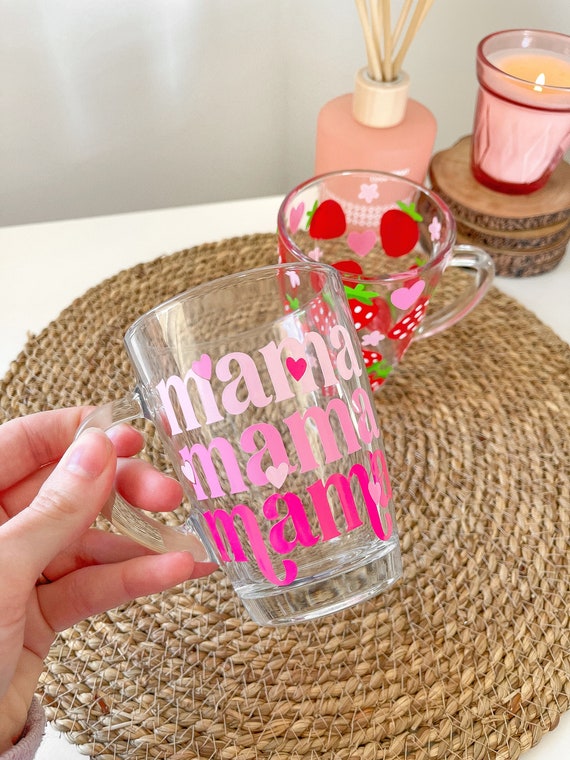 This cute mama glass is not only perfect fortea and coffee, but it's stylish and high quality. Made with a permanent vinyl, this glass will make any drink look amazing! Perfect for your next party or just on the daily. Do not microwave or dishwash!