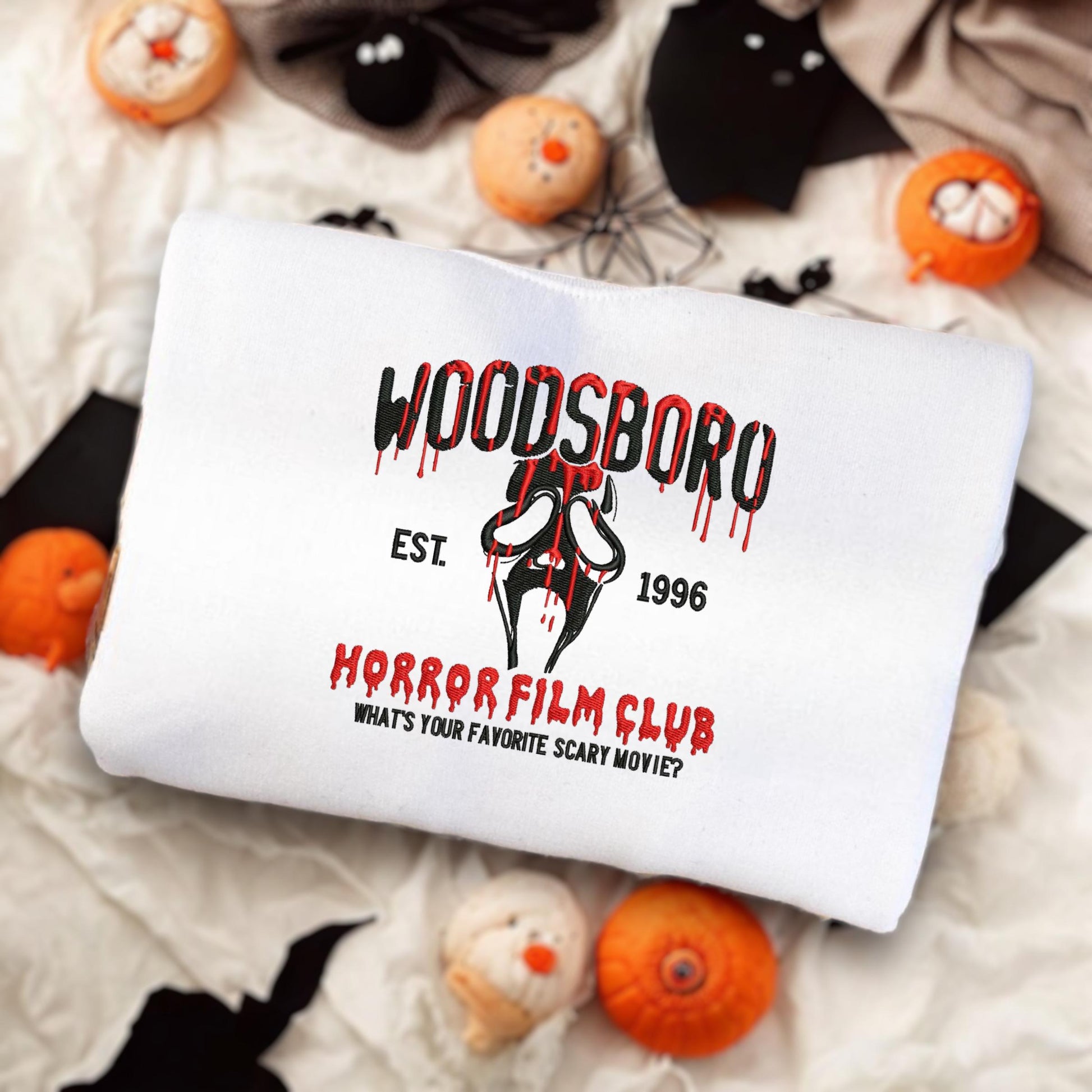 If you're a fan of the new scream movie, then this sweatshirt is perfect for you! It features a creepy ghost face embroidered design on the front, making it the perfect sweatshirt for going to see the new movie! Plus, the Woodsboro logo adds an extra bit of fun to this horror-themed piece. Whether you're dressing up as a killer or a victim, this sweatshirt will make sure everyone knows you're a fan. So put on your fright makeup and get ready to scream with this Woodsboro scream ghost face embroidered sweatshirt!